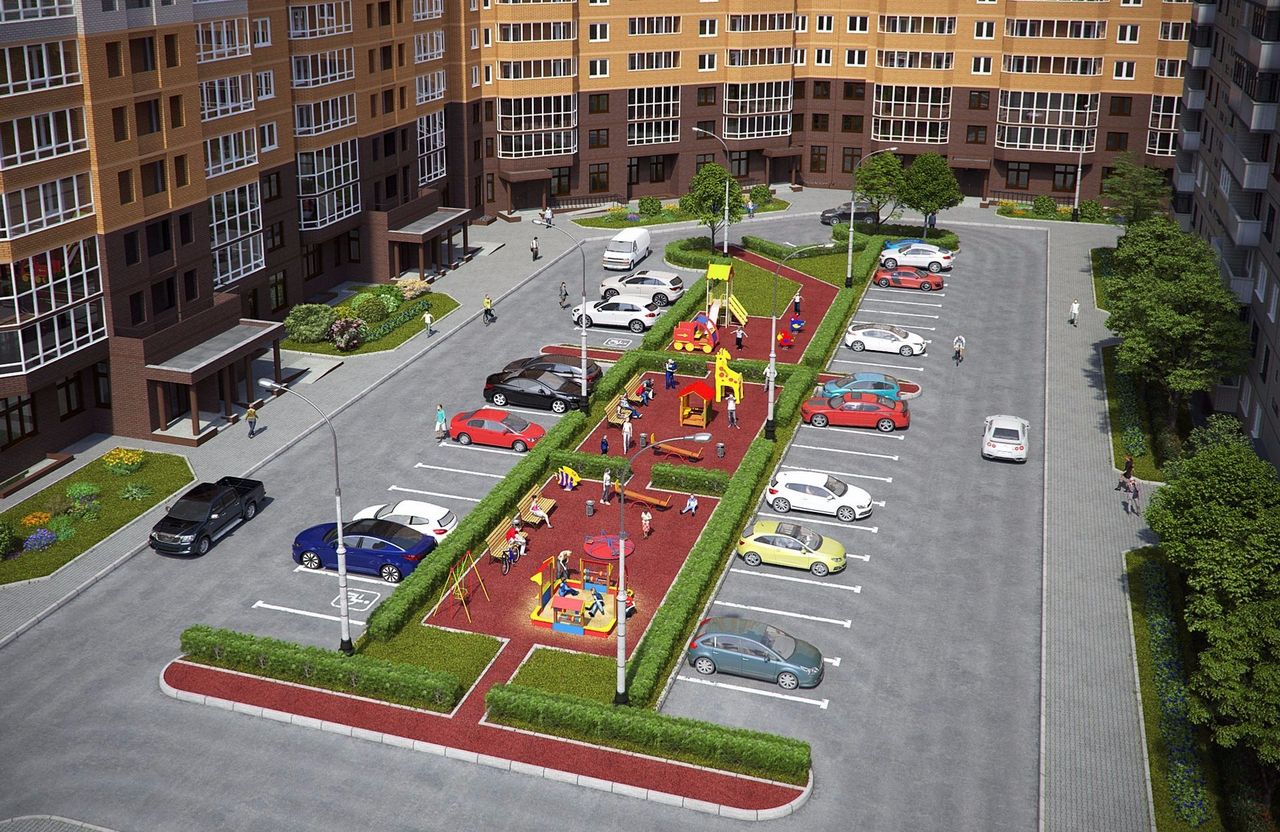 Согласно плану застройщика для жилых и коммерческих помещений предусмотрен общий подземный двухуровневый паркинг на 3763 места, в котором сооружено 7 независимых рамп. 4 из них для жителей кварталов, 2 для офисных сотрудников и торговой зоны, 1 для коммерческой зоны, расположенной в галереях на центральной площади.