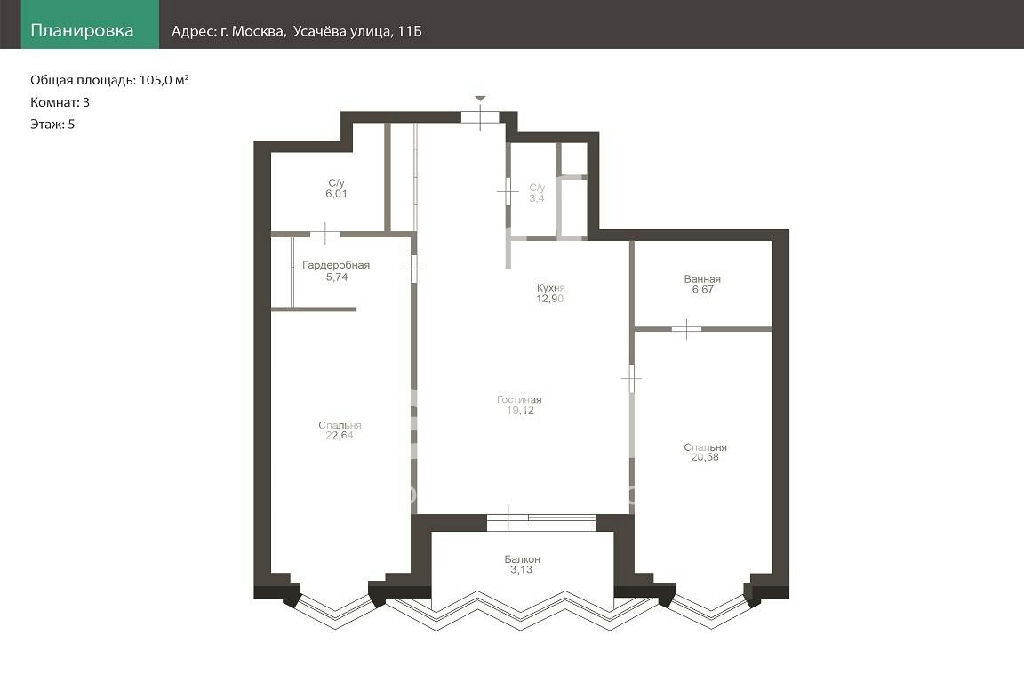Общая: 105 м2
